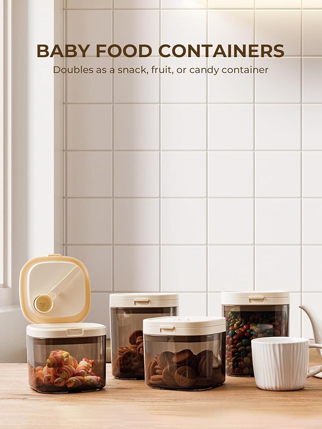 • Multi-Purpose Storage: This 800ml powder formula dispenser on the go holds up to 380g of formula and is perfect for storing snacks, cookies, candy, nuts, fruits and more, making it a versatile addition to your kitchen