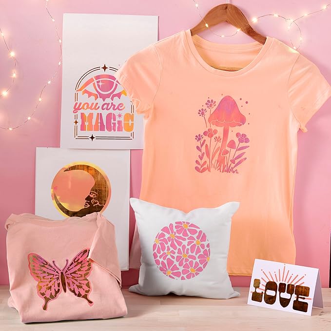 • Professional-Quality Results – Sticky stencils ensure clean, sharp edges every time, making it easy for beginners and seasoned artists to create polished, boutique-worthy designs on any fabric.