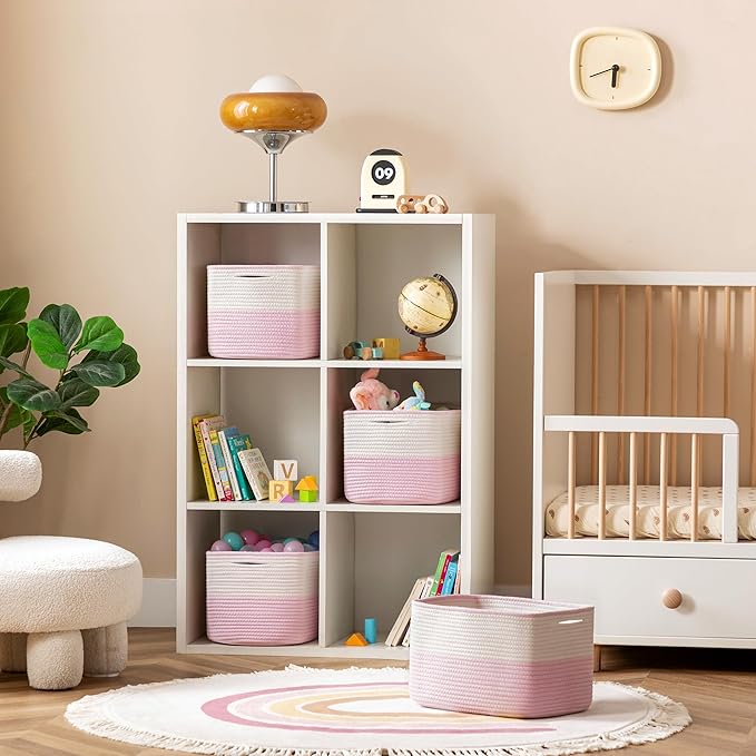 • Soft & Safe Materials: Our storage baskets are made of natural cotton ropes which has no chemical smell, soft and also has no sharp edges. They are hand-woven to be durable and sturdy, ensuring years of use.