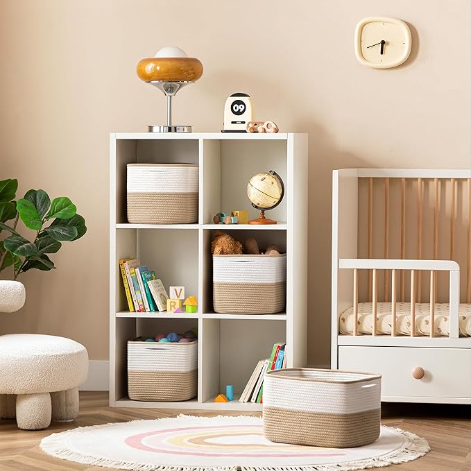 • Soft & Safe Materials: Our storage baskets are made of natural cotton ropes which has no chemical smell, soft and also has no sharp edges. They are hand-woven to be durable and sturdy, ensuring years of use.