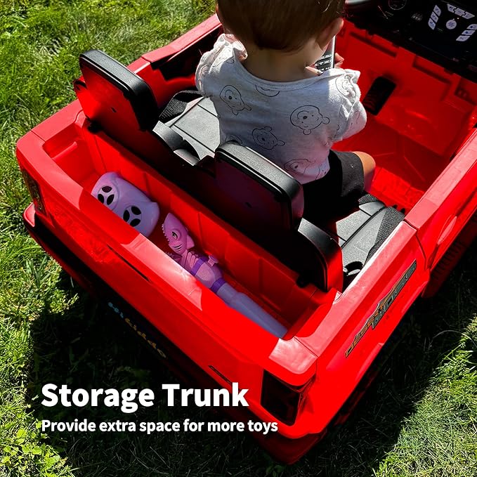 • 19" WIDE TWO SEATER: Hikiddo 2 seater ride on car for kids with remote control also allows two children to ride together comfortably with 110lbs Max capacity. Additionally, it includes a storage space for kids to keep their toys.