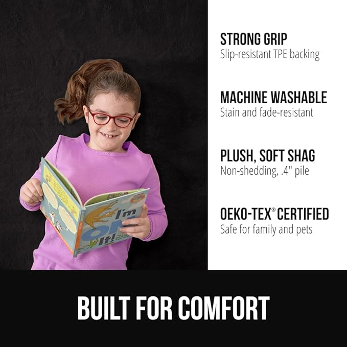 GORILLA GRIP Ultra Soft Washable Area Rug, 6x9, Stain and Slip Resistant Plush Thick Carpet for Bedroom Living Room, No Shed Floor Rugs, Pet Friendly, Dorm Essentials, Kids Nursery Home Decor, Black