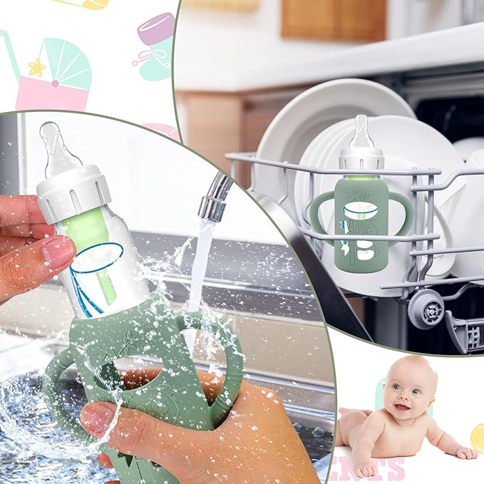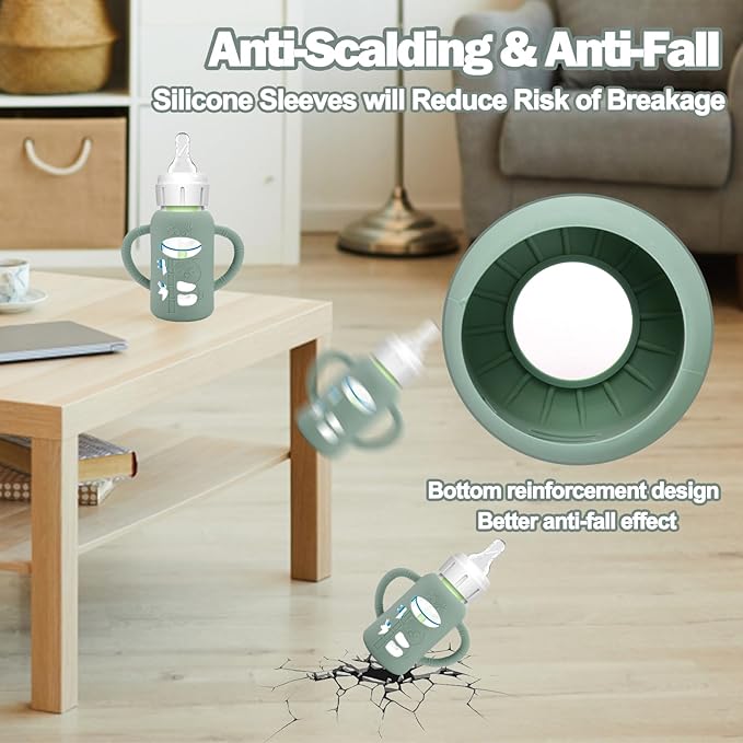 • Unique Designed for Baby Bottles - The silicone sleeves for Dr. Brown's Baby Bottles can against drop down,bumps and scratches. These are a must essential product for using glass baby bottles. They provide a more sturdy protection for glass baby bottle from breaking if dropped, which also unique handle design shape make it easier to grip and hold