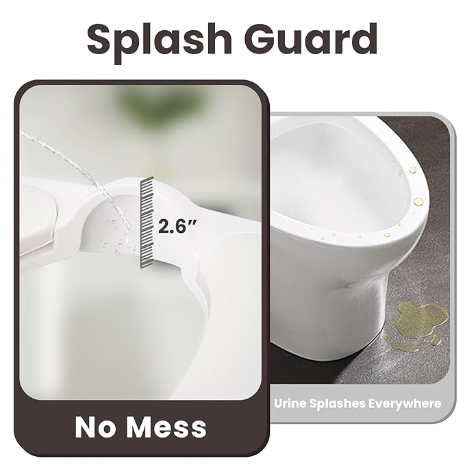 • Comfortable and Easy-Clean Potty Seat: Flat base fits securely on flat toilet rims. Includes splash guard, raised back edge, and adjustable height. Seat removes easily for a quick clean or full rinse