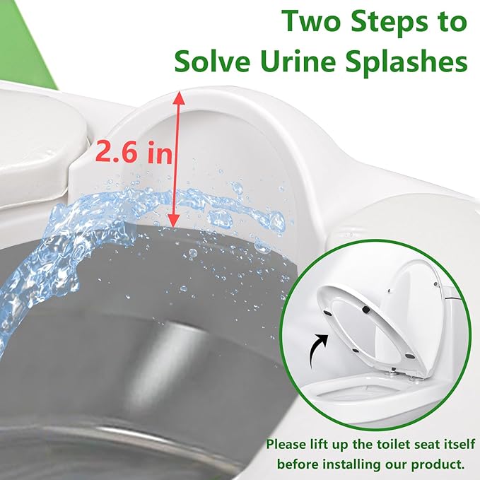 • Splash-proof and Easy to Clean: Lift up the adult toilet seat and place baby toilet seat on the toilet bowl, along with the splash guard that is up to 2.6” deep to solve the urine splash problem. The removable upholstery can also be easily removed for cleaning for regular care
