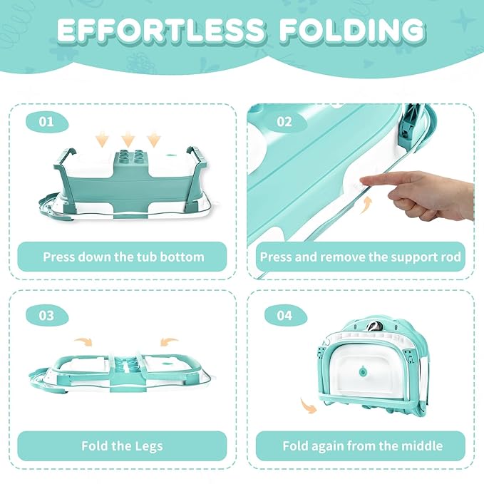 • 【High-Quality Materials, Stable Support】made of high-quality PP+TPE materials, non-toxic, odorless and environmentally friendly high-quality materials, friendly to the baby's skin, so that parents can rest assured, the bottom of the bathtub is supported by four corners to enhance the structural stability to prevent rollover, the connection is tight and strong, after many folding, use tests, not easy to deform and damage, accompany the baby's growth at multiple stages, long-lasting
