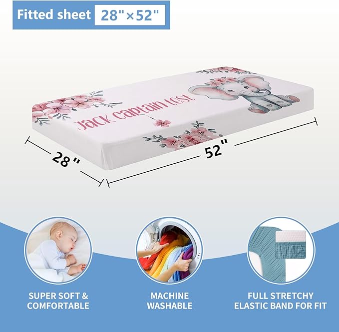 Personalized Nursery Bedding Set, 5 Pcs Custom Crib Sets, Soft Baby Girl Set with Name, Double Layer Elephant Infant Bedding Set Customized Gifts for Toddlers