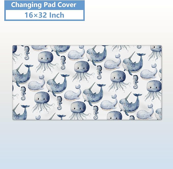 Personalized Baby Crib Bedding Set, 5 Pcs Custom Name Baby Bedding Set, Double Layer Nursery Bedding Set, Ocean Animal Baby Crib Set for Girls Boys, Gift for Toddler Infant Baby New Parents