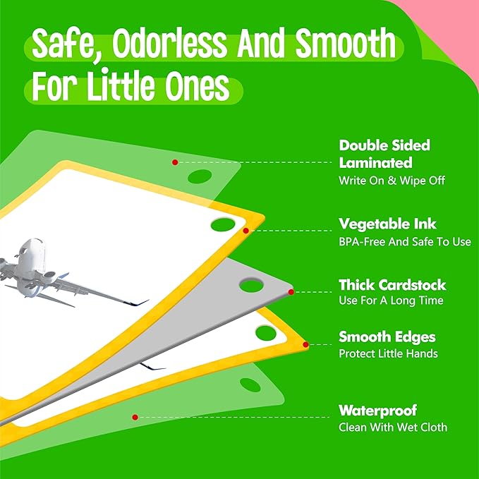 • Portable and Easy-to-Organize: Pre-punched holes and two sturdy rings keep the cards neatly organized for effortless portability. Whether on a road trip, in the classroom, or at home, this compact set ensures that learning can happen anytime, anywhere.