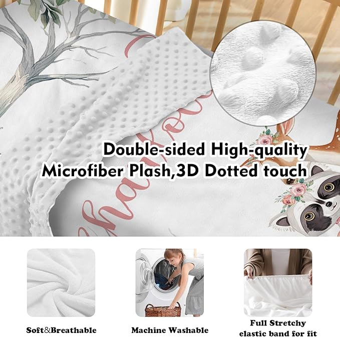 Personalized Nursery Crib Bedding Set: Custom Name 5 Piece Baby Crib Sets with Cute Sika Deer & Fox Pattern - Toddler Double Layer Blanket Set, Comfortable Crib Bed Sheets for Baby Grils