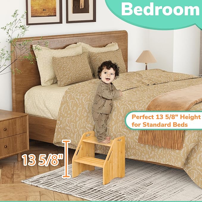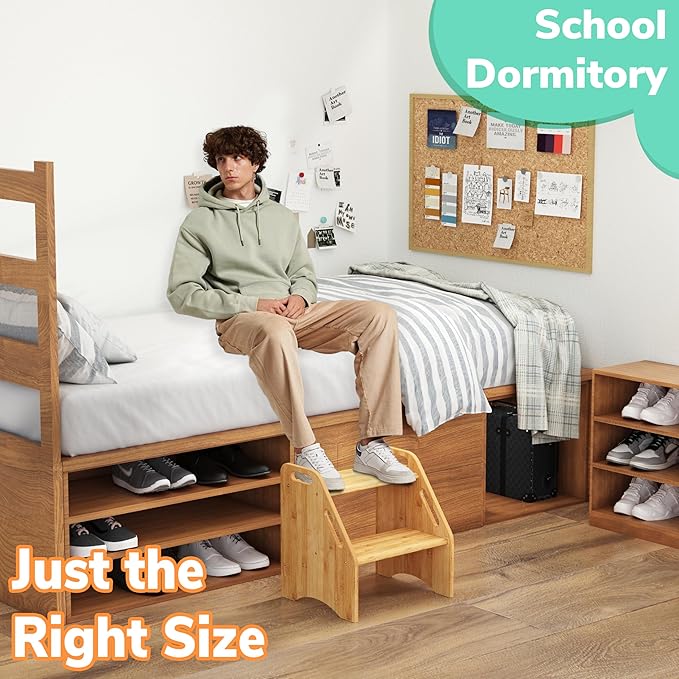 • IDEAL 13.6'' HEIGHT FOR HIGH BEDS: With an overall height of 15.75'' and a top step height of 13.6'', this stool is tailored for both adults and children facing challenges while entering or exiting the bed. It suits standard beds, high beds, lofty mattresses, and dorm beds, providing effortless access for adults and kids, thereby boosting convenience and safety. Moreover, it serves as a valuable addition to your closet