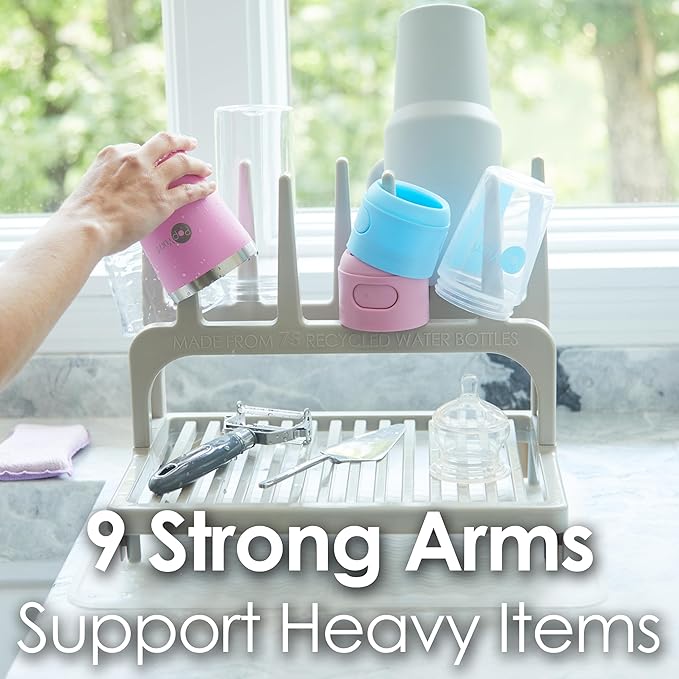 • ✅ LARGEST DRYING CAPACITY! It has the largest flat drying surface of any compact drying rack! The nine strong drying arms are spaced far apart so that they can not only hold narrow baby bottles but also hold heavy and wide 40oz tumblers.