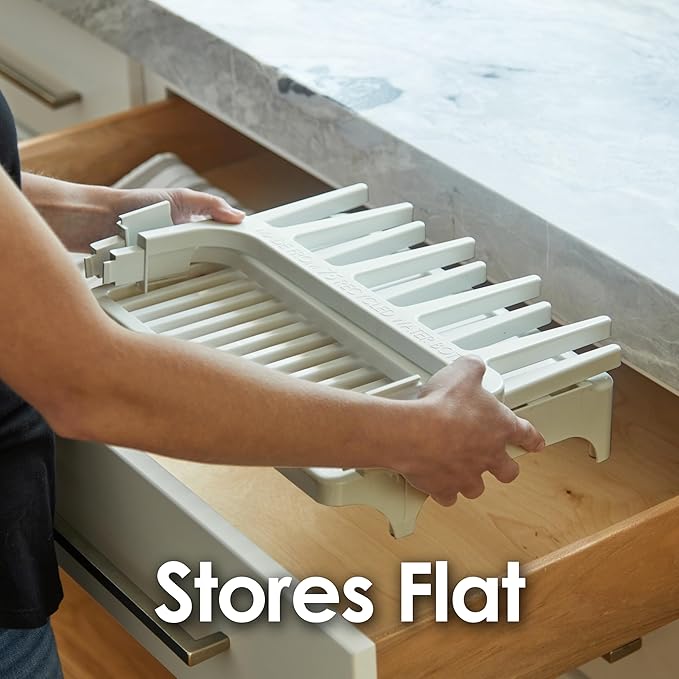 • ✅ BEAUTIFUL SPACE SAVING DESIGN! Great for air drying everyday items like plastic bags, cups, baby bottles, tumblers and most items which are not dishwasher safe. The compact drying rack sits near the back of your counter, leaving the front counter area available for use.