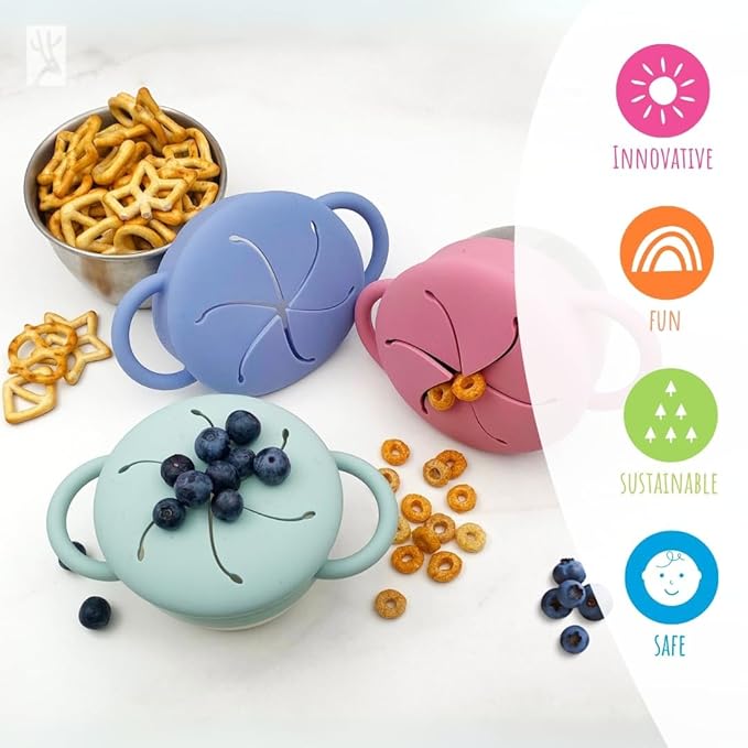• PERFECT FOR EVERYDAY SNACK: With easy grip side handles, these snack cups are made for tiny hands to hold. The soft silicone catcher keeps snacks safely inside. Lightweight and portable, these cups are great for indoor fun or outdoor adventures. Plus, they fit into most cup holders - strollers, car seats, and more.
