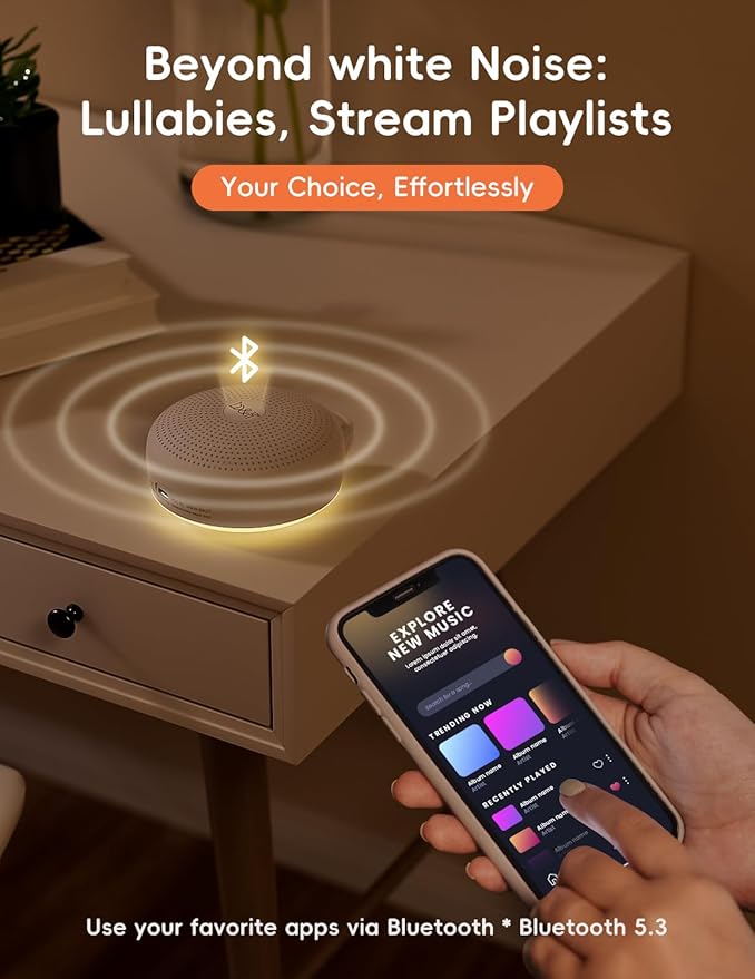 b&h Portable White Noise Machine with Night Light - Sound Machine for Baby, Bluetooth Speaker, 24 Soothing Sounds, 9 Colors Light, Timer, Rechargeable Sleep Machine for Home and Travel