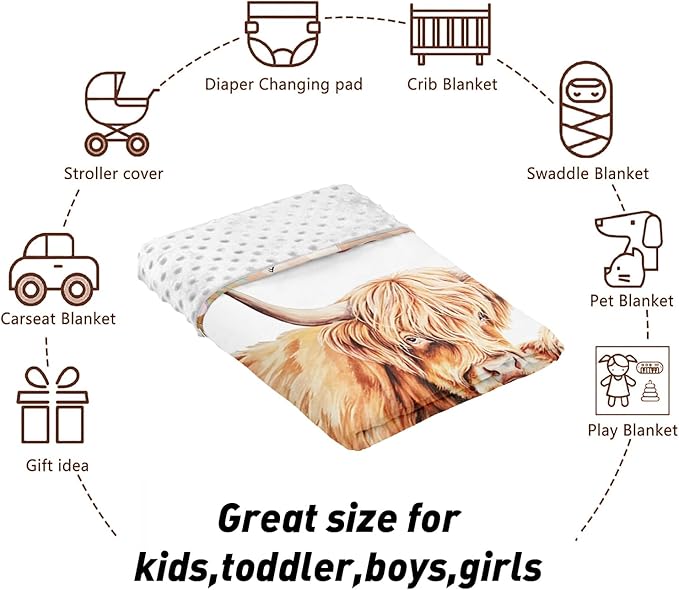 Custom Name Crib Bedding Set - Highland Cow Design, Personalized Floral Nursery Bedding 3-Piece Set– Soft Blanket, Fitted Sheet, Changing Pad Cover – for Newborns Girls Nursery Gifts