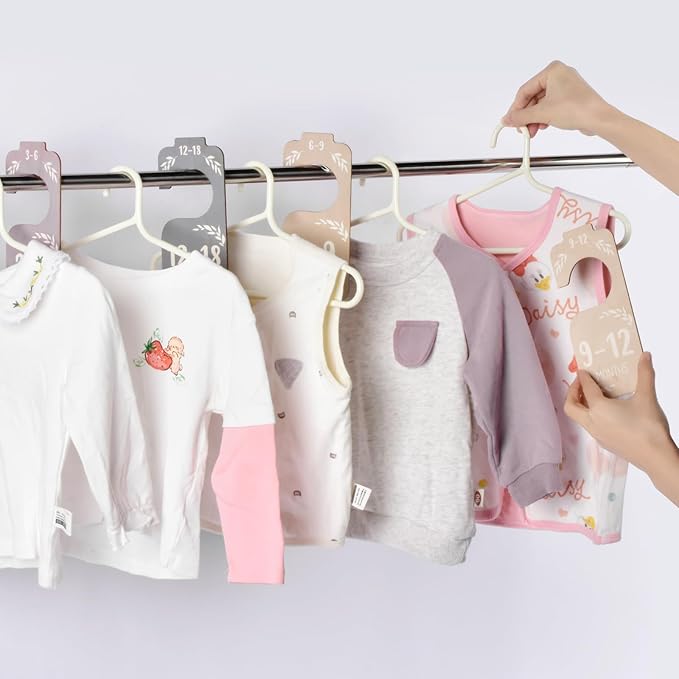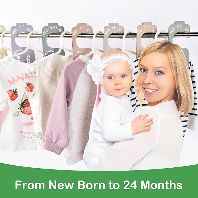 • Create A Nice And Organized Baby Closet- Baby closet dividers make it easy to stay organized! This adorable baby closet organizer set includes 8 dividers for newborns, 0-3, 3-6, 6-9, 9-12, 12-18, 18-24 months toddlers, so you can always be prepared for your baby's growth