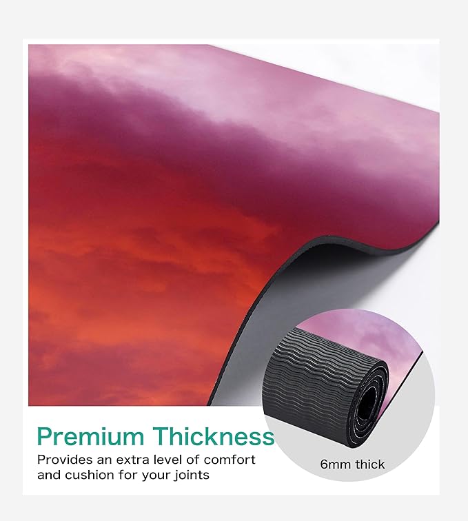 • Standard Size: 72"(183cm) x 24" (61cm); offers adequate space to fit any type of exercise like yoga, pilates, bikram, and fitness exercise. the 6mm extra thick, high density provides excellent cushioning and soft. All our mats come with a free carry bag for easy transport from home to yoga class
