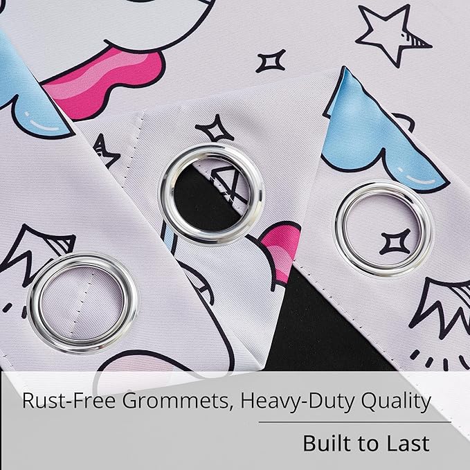 Unicorn Blackout Curtains for Girls' Bedroom - 2 Panels, Each W52×L84, 100% Blackout, Energy Efficient, Thermal Insulated, Noise Reducing, Pink Girls Curtains