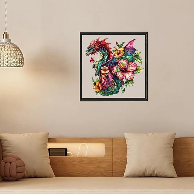 Wooden Puzzles for Adults, Dragon Puzzle Challenge Jigsaw Puzzles 300 Piece (Royal,12.62 in) Thickened Unique Shapes Family Reunion Puzzle, Best Gift for Adults and Kids, Family Game