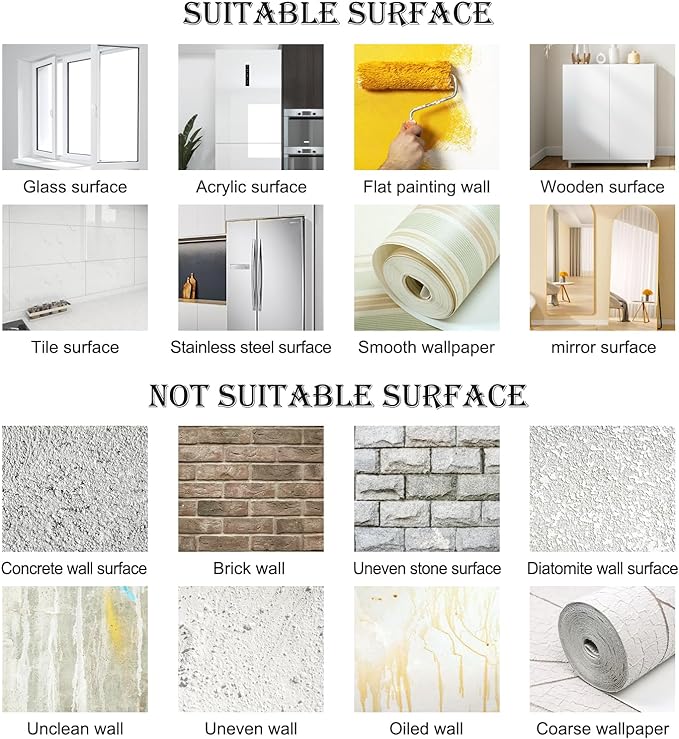 • 【Easy to Apply】: There's a small finished image for your reference. 1.Flatten the rolled stickers with weight. 2.Cut out large patterns around the die-cut edge before applying. 3.Slowly remove the backing paper while placing the sticker onto the wall. 4.At last, use the included card to smooth and firm the sticker against the wall.