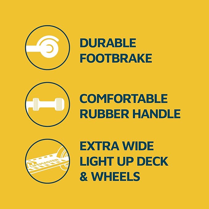 • ATTRACTIVE MULTI-COLOR LED: Bring excitement to every ride with vibrant, multi-color flashing lights on deck and wheels. Better visibility during evening rides, making this scooter safer for nighttime use. Three AA batteries are required (not included).