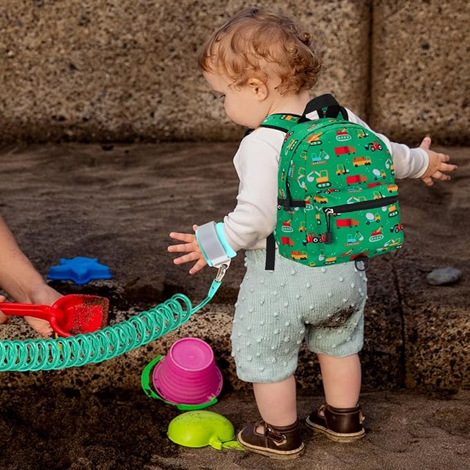 Accmor Toddler Backpack with Leash, Cute Baby Backpack with Anti Lost Wrist Link, Mini Kids Backpack Leash Walking Harness for Travel, Small Excavator Backpack Tether for Boys Girls Ages 1-3 (Green)