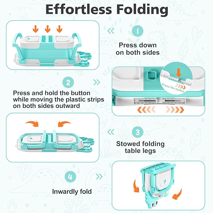 • Innovative Double-Fold Design: Our baby bathtub boasts a space-saving double-fold design, measuring under 4 inches in thickness. This allows for easy storage in tight spaces and enhances portability, perfect for both home use and travel. The off-the-floor drain with a user-friendly rubber plug ensures seamless water drainage without the need for relocation.