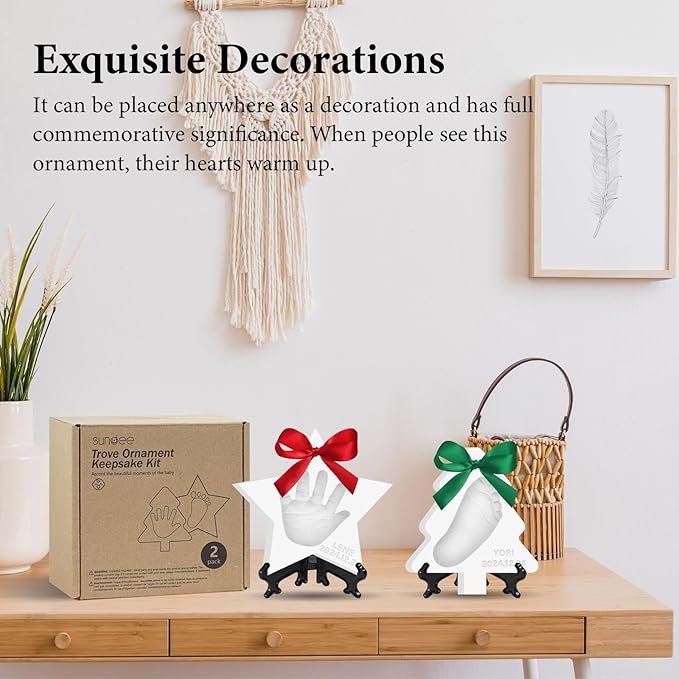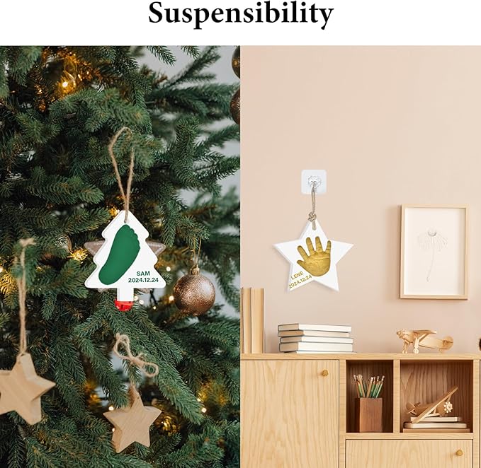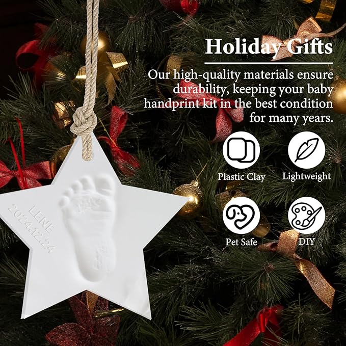 • Record Your Baby's Growth:Create Meaningful memories Don't let newborn exhaustion erase those precious memories.This baby souvenir clay ornament captures their perfect little handprint, footprints, fingers and toes. It's a must for newborns!