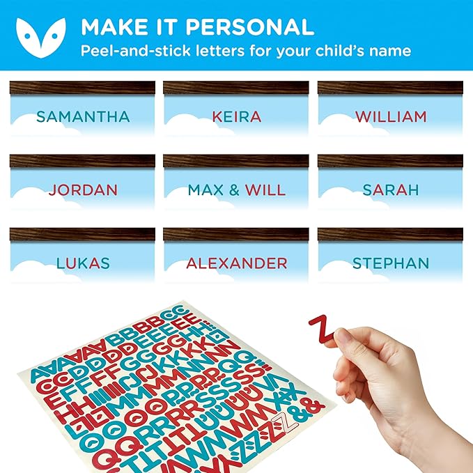 • MAKE IT PERSONAL - Your child will love seeing their name on their favorite vehicles wall growth chart! Use our peel-and-stick decal letters to personalize your height tracker for kids.