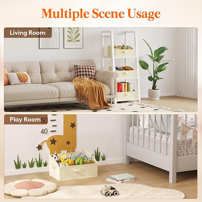 • Premium Material: Crafted from high-quality non-woven fabric, these closet organizer bins are supported by thick cardboard on the sides and bottom, ensuring a sturdy structure that resists deformation. This robust construction guarantees long-term use and excellent load-bearing capacity. Additionally, the bins are foldable, allowing for space-saving storage when not in use.