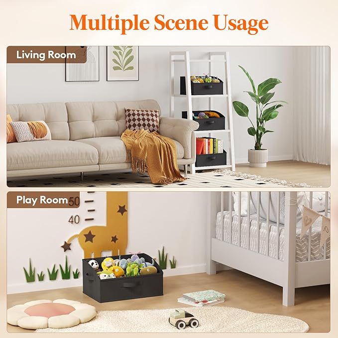 • Premium Material: Crafted from high-quality non-woven fabric, these closet organizer bins are supported by thick cardboard on the sides and bottom, ensuring a sturdy structure that resists deformation. This robust construction guarantees long-term use and excellent load-bearing capacity. Additionally, the bins are foldable, allowing for space-saving storage when not in use.
