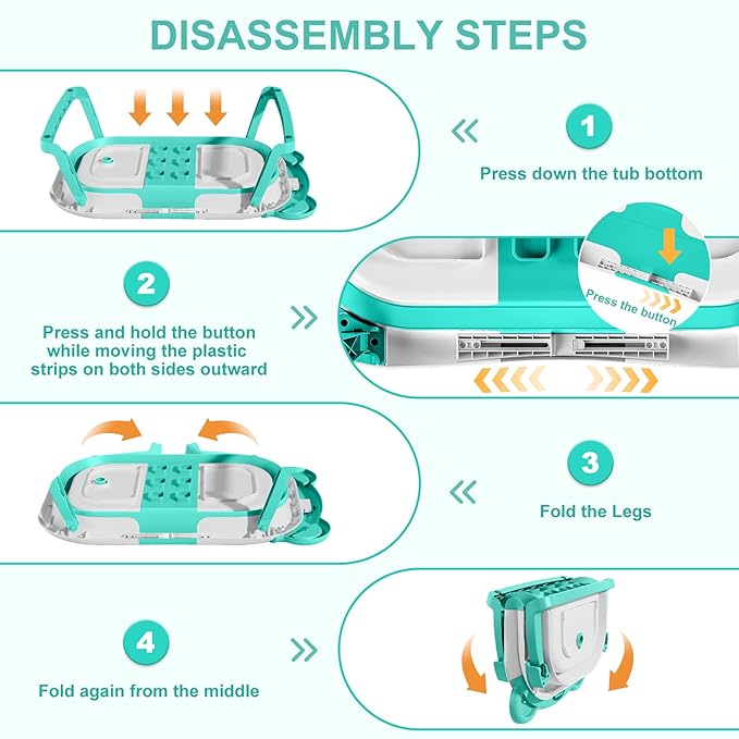 • Adorable Design: Designed in a charming bear shape, our baby shower tub adds a delightful touch to bath time, creating a cherished experience for your little one. The foldable design is tailored to accompany your baby from newborn to toddler (0-36 months) , ensuring a pleasant and safe bathing journey.