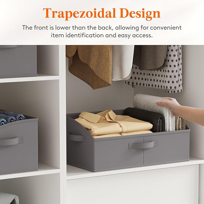 Lifewit Storage Baskets for Shelves, 6 Packs Non-woven Fabric Trapezoid Closet Organizer Bins with Handles, Foldable Clothing Containers Box for Clothes, Toy, Towel, Book, DVD, Hats, Large-Grey
