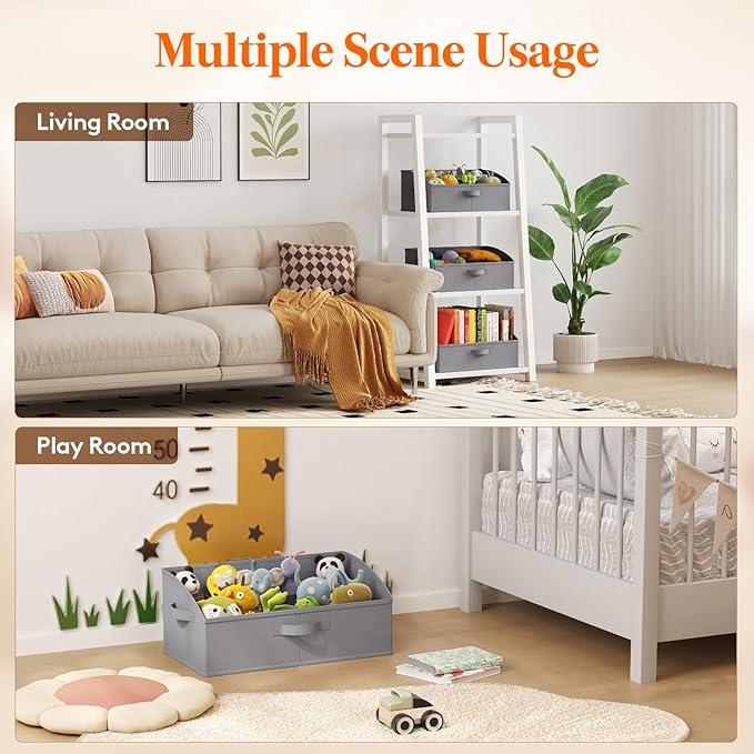 • Premium Material: Crafted from high-quality non-woven fabric, these closet organizer bins are supported by thick cardboard on the sides and bottom, ensuring a sturdy structure that resists deformation. This robust construction guarantees long-term use and excellent load-bearing capacity. Additionally, the bins are foldable, allowing for space-saving storage when not in use.