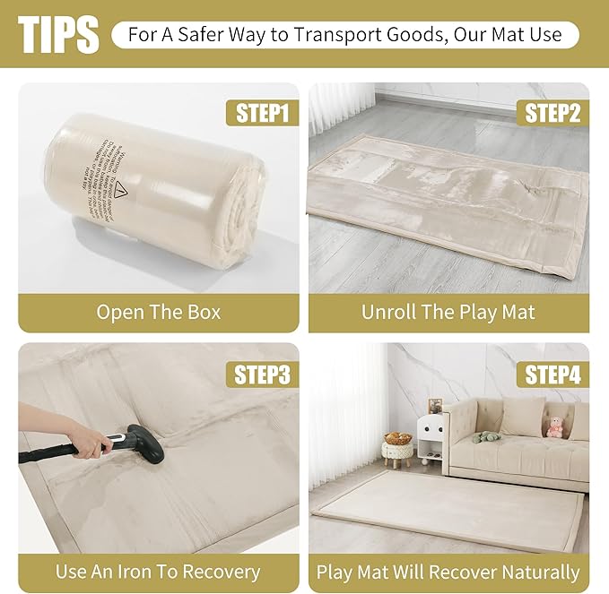 • 【Easy to care 】: The 74x50 inch playpen mat can be folded to easily store your playpen mat. When you open it, it has creases, bumps. Don't worry, you can recover your playpen mat with steam or ironing