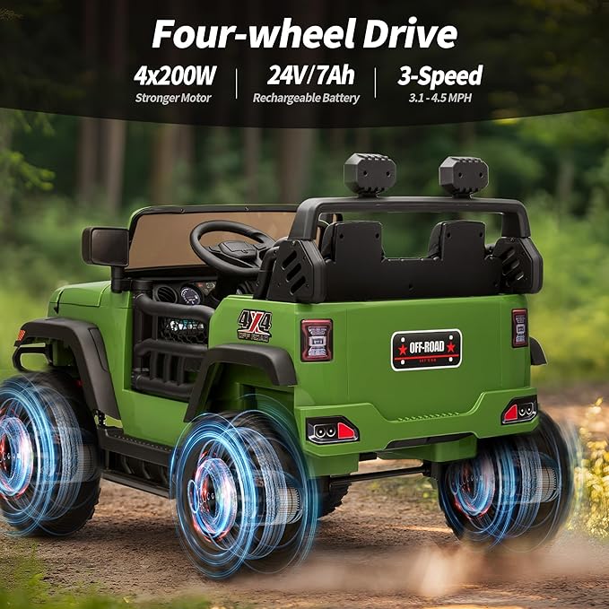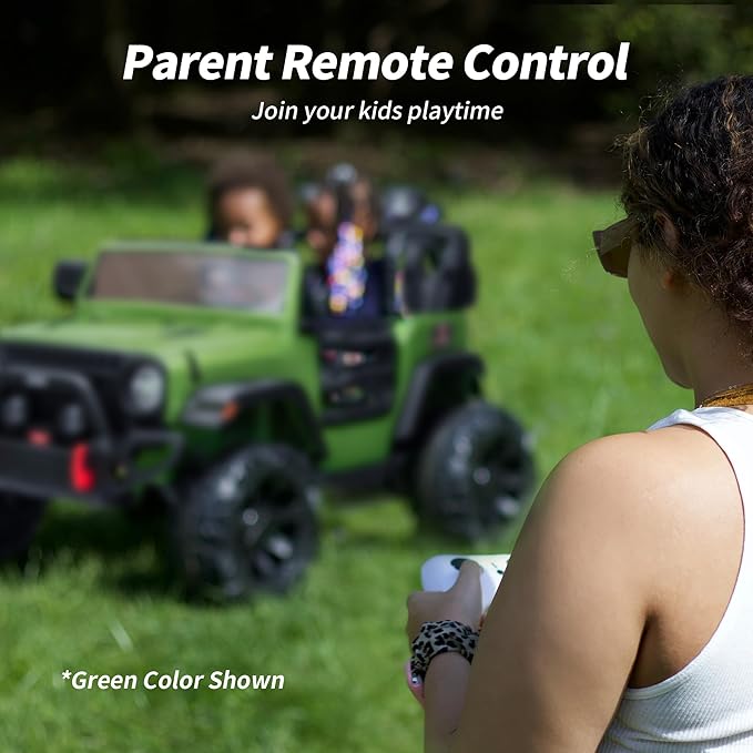• POWERFUL PERFORMANCE: This 24V big kids ride-on car with remote features strong 4x200W motors. The switchable 2WD/4WD mode ensures it's perfect for any terrain, providing a thrilling and fun riding experience.