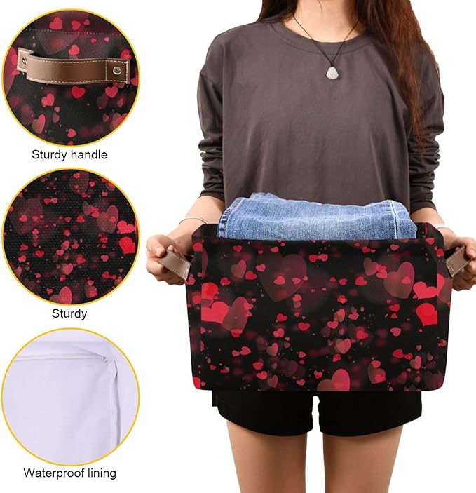 • Storage Basket Cube Material: Canvas exterior, PE waterproof coated white lining fabric, pu leather handles. Sturdy leather handle make it easy to carry or pull off and out of shelves.