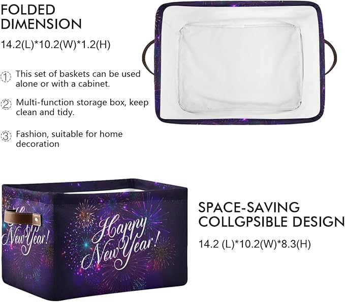 Storage Basket Happy New Year Cube Storage Bins Organizer Bag Collapsible Closet Shelf Baskets with handle for Baby Cloth Pet Toy Book 14.2×10.2×8.3 IN