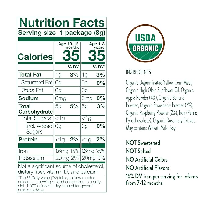 • USDA Certified Organic — Our organic ingredients, recipes and suppliers have been specially screened and selected to ensure they are appropriate and safe for growing little bellies