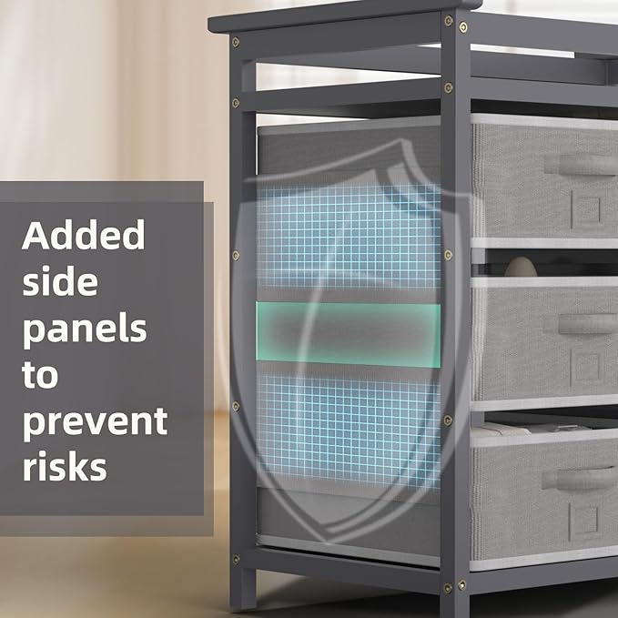 • 2-in-1 Changing Table: This baby changing table dresser contains 3 large and 3 small storage baskets, which can be used as a diaper changing station and a storage dresser. You can change diapers for your baby on the table, while you can also place diapers, baby supplies or other things in the cabinet. The multifunctional design ensures long-term use, making it a valuable addition to your nursery furniture collection.