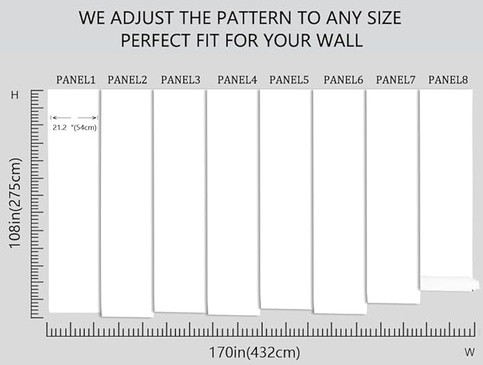 • Before purchasing, you need to measure the size you need, our mural is 108 inches high and 170 inches wide, in order to facilitate long-distance transportation, we divide the width of the mural into six pieces of 21.2 inches each, with a numerical serial number underneath each piece for easy installation!