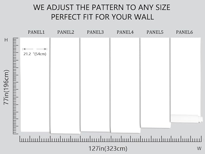 • Before purchasing, you need to measure the size you need, our mural is 77 inches high and 127 inches wide, in order to facilitate long-distance transportation, we divide the width of the mural into six pieces of 21.2 inches each, with a numerical serial number underneath each piece for easy installation!
