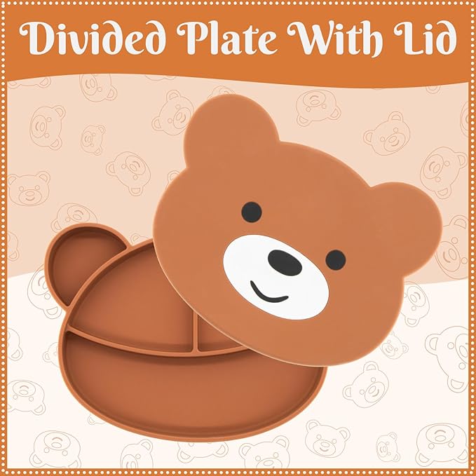 • Baby Feeding Set: Get your baby to love mealtime and free up mom's hands! This 7-piece baby feeding set includes 1 Bear snack cup, 1 Bear simple cup, 1 Bear spoon, 1 Bear bowl, 1 Bear fork, 1 Plate with lid, 1 Bear bib