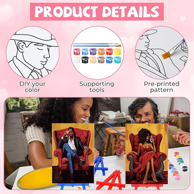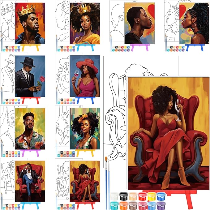• 10 Pre Printed Canvases: 10 kinds of Valentine's Day patterns are engraved on the pre drawn board; Include women, man, African queen patterns, the size of: 7 x 5 x 0.1inch/18 x 13 x 0.3cm, cute and easy, you can use the provided paint to color according to your own aesthetics, improve your painting creativity in the process, and also reduce stress and relieve anxiety