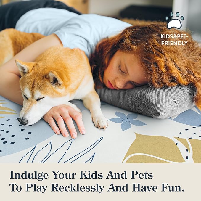 • Non-Slip and Safe: The rubber backing is coated with a TPR backing to help the blue rug stays securely in place. Sufficient grip to prevent dangerous slips for the elderly and children. Safe to use on laminate and hardwood floors