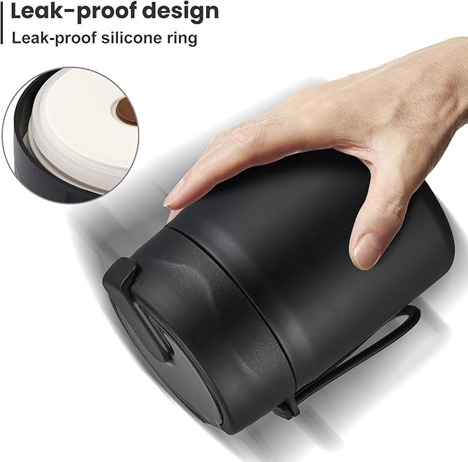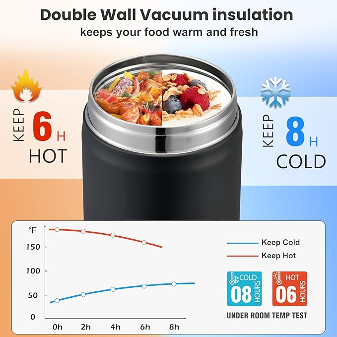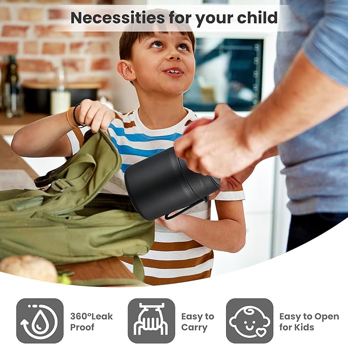 • Leak-Proof Design: Featuring an upgraded double-layer silicone seal that provides a 360° leak-proof guarantee. Rest assured that our leak-proof thermo food jar can fit in your lunch bag without worrying about spills. The insulated thermal food jar comes with a stainless steel spoon for your child's convenience.