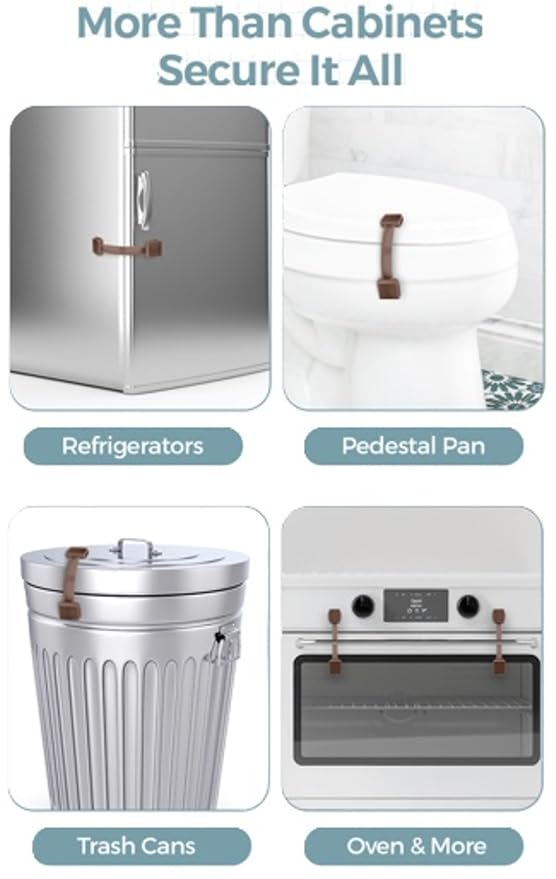 • OTHER USES: Child locks for cabinets and drawers are used for baby cabinet safety latches, fridges, trashcans, ovens and much more. Baby proof cabinet locks, drawer baby proofing and baby proof drawer locks are definitely a multi-purpose mechanism.