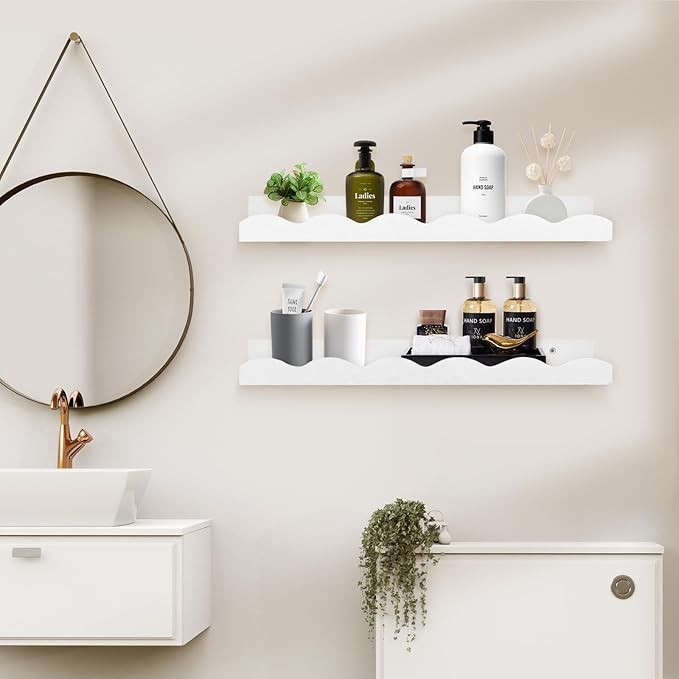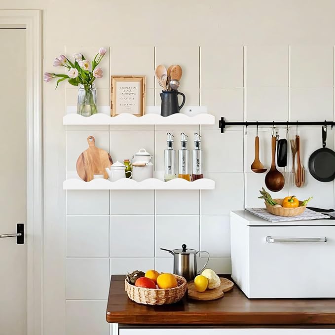 Nursery Book Shelves, 4 Pack White Floating Shelves for Wall, Wood Scalloped Shelves for Storage Books, Wall Book Shelf for Kids Rooms, Bedroom, Toddler Room, Baby Room, Nursery Decor