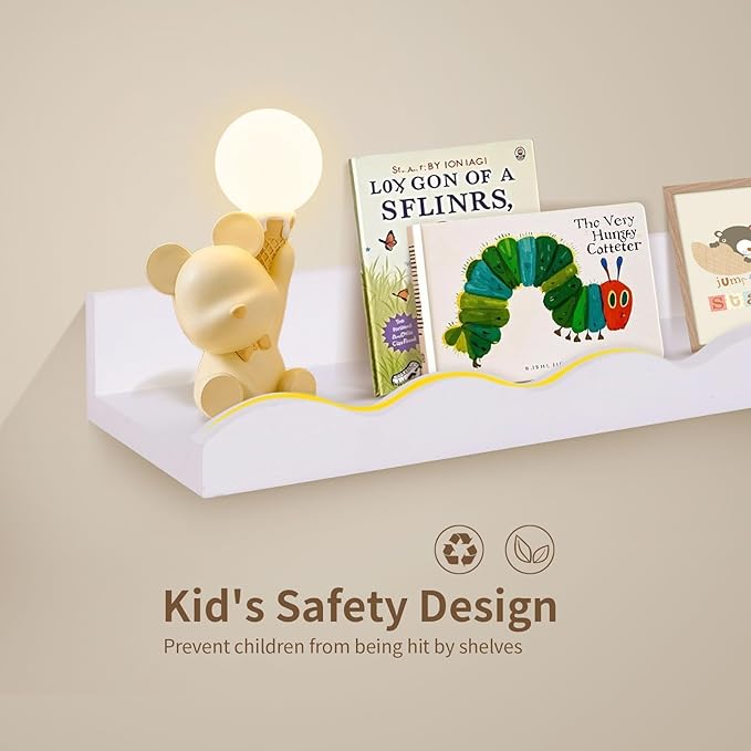 • Kid-friendly Wall Shelves - The Book Shelf for Kids Rooms is Made of Sustainable and Safe Materials to Ensure the Safety of Your Kids. The Wall Floating Shelves Can Create an Organized and Accessible Environment for Kids, Helping to Cultivate Your Children's Reading Habits While Promoting a Healthier Family.